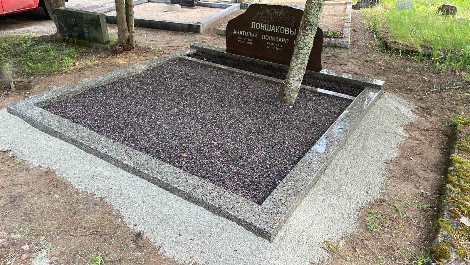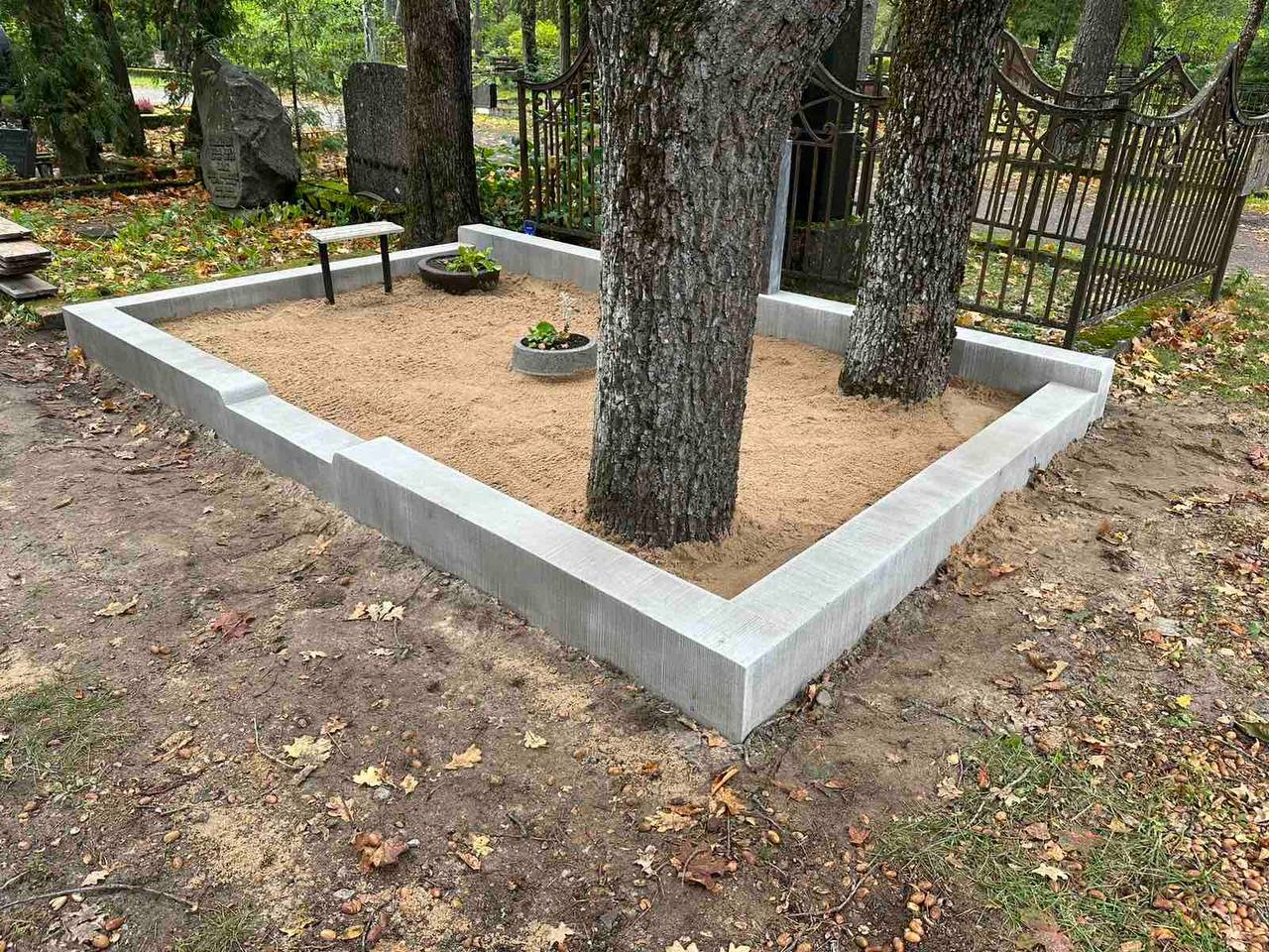Lihvitud betooni hauapiirdeid iseloomustavad muljetavaldavalt siledad pinnad ja korrapärased vormid, muutes paiga moodsaks.